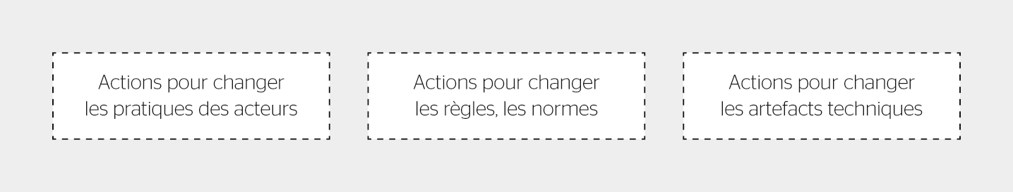 Quand on veut agir sur les services énergétiques, on agit sur un système socio-technique complexe composé d’acteurs, de règles et d’artéfacts techniques. [7] La manière privilégiée de tester si une intervention a un effet ou non est la quasi-expérimentation. C’est ce qui a motivé l’auteur à tester l’approche des laboratoires vivants (living labs) pour co-développer des actions d’efficacité énergétique (EE) avec les parties prenantes et les tester sur le terrain. Cette recherche transformative agit à trois niveaux (figure 1).