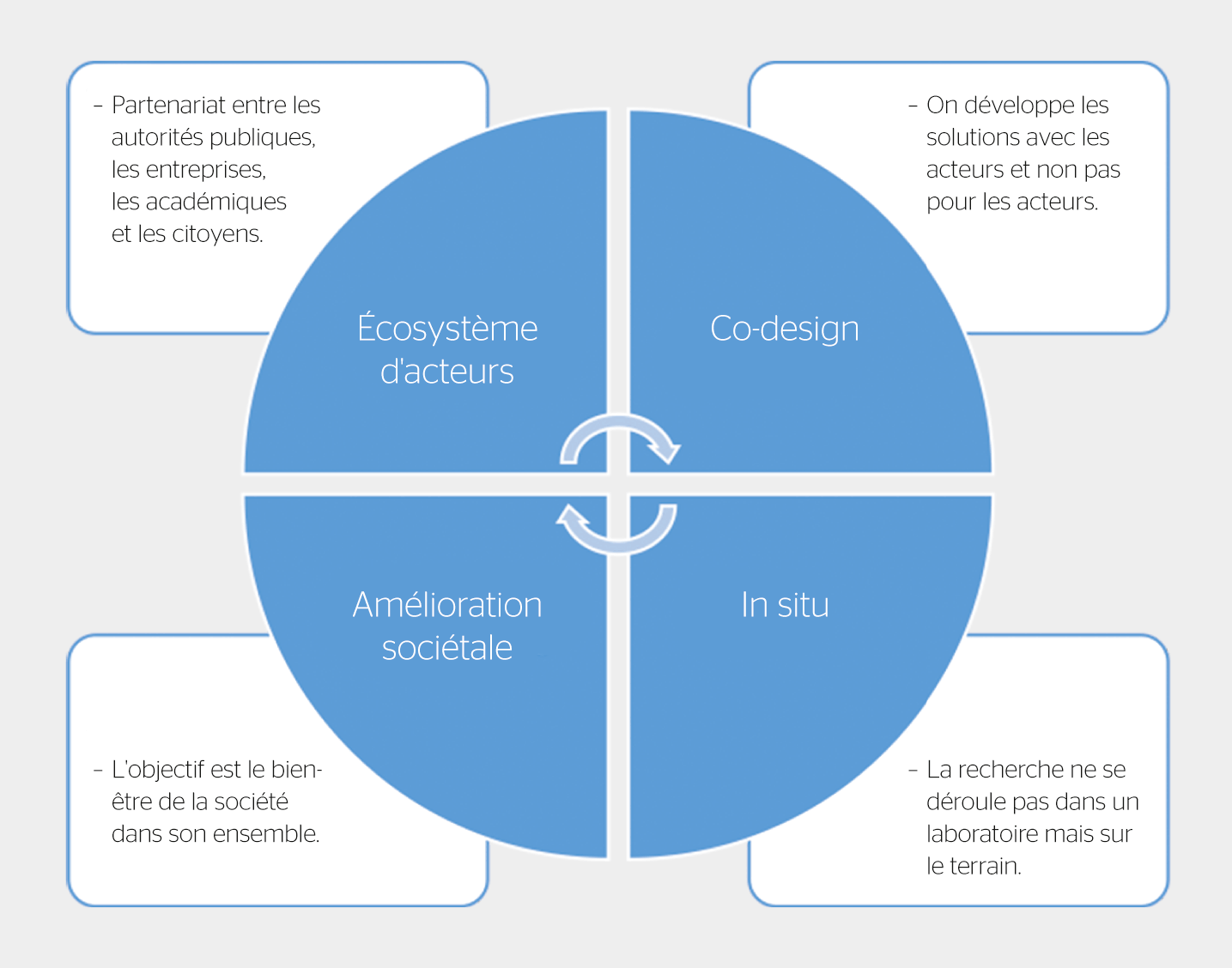«Un Living Lab est un intermédiaire d’innovation, qui orchestre un écosystème d’acteurs dans une région spécifique. Son objectif est de co-concevoir des produits et des services, de manière itérative, avec les parties prenantes clés, dans le cadre d’un partenariat public1)-privé-personnes et dans un environnement réel. L’un des résultats de ce processus de co-design est la co-création de valeur sociale (bénéfice). Pour atteindre ses objectifs, le Living Lab mobilise les outils et méthodes d’innovation existants ou en développe de nouveaux.» [6]
