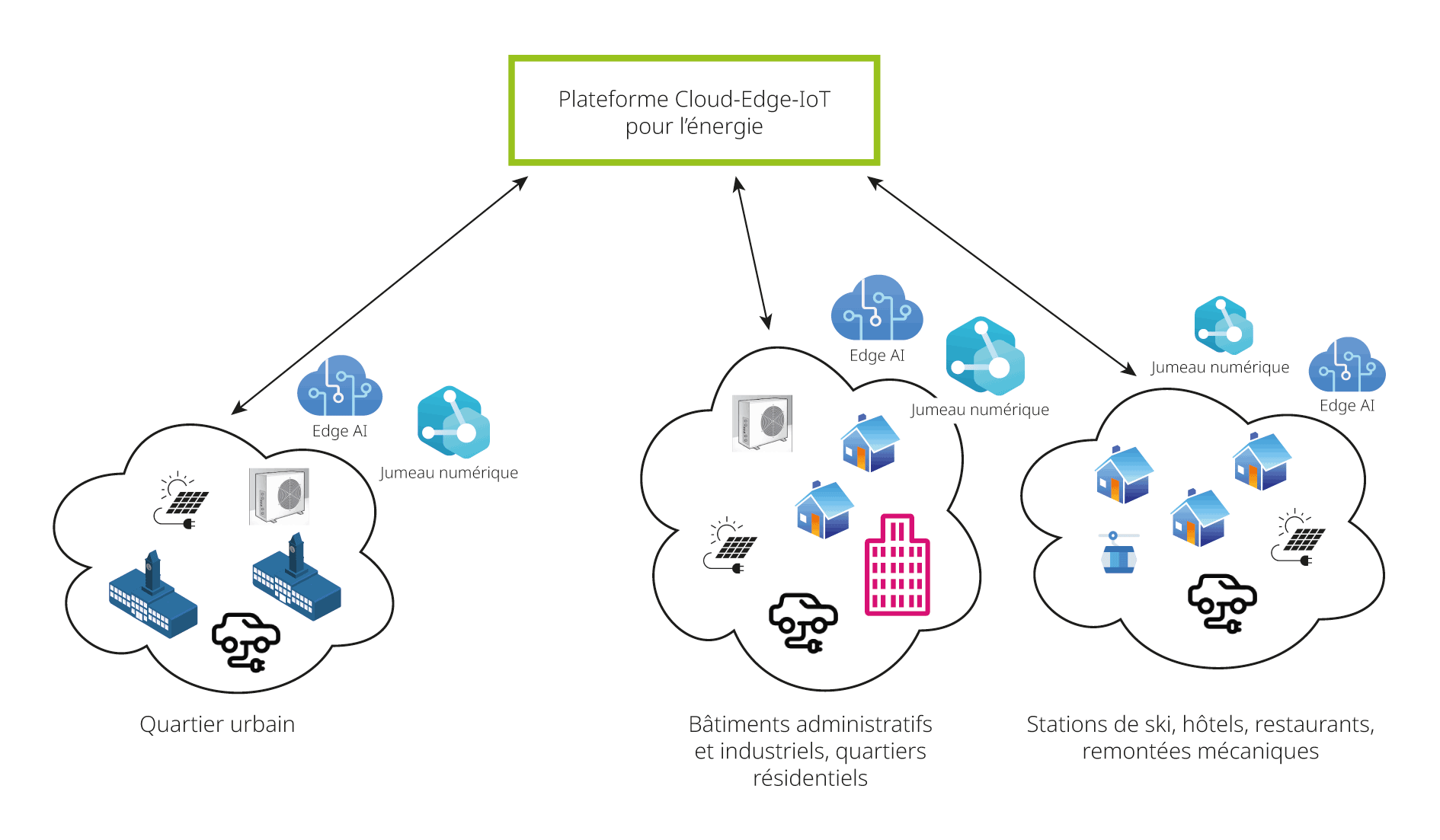 Sur le plan conceptuel, O-CEI est une extension à l’échelle régionale et européenne du projet LASAGNE: là où ce dernier a défini localement la grammaire du microgrid – mesurer finement grâce aux GED de Clemap, représenter les acteurs via des jumeaux numériques, prédire les consommations futures et coordonner sans point unique de défaillance –, O-CEI fournit l’infrastructure distribuée permettant de faire coopérer, par exemple au Val d’Anniviers, plusieurs bâtiments, des bornes de recharge pour véhicules électriques et des remontées mécaniques. La plateforme Cloud-Edge-IoT permet de partager des modèles, d’exécuter des décisions de manière dynamique et de synchroniser la flexibilité entre des sites hétérogènes, tout en respectant des exigences strictes en matière de confidentialité, de sécurité et de performance.