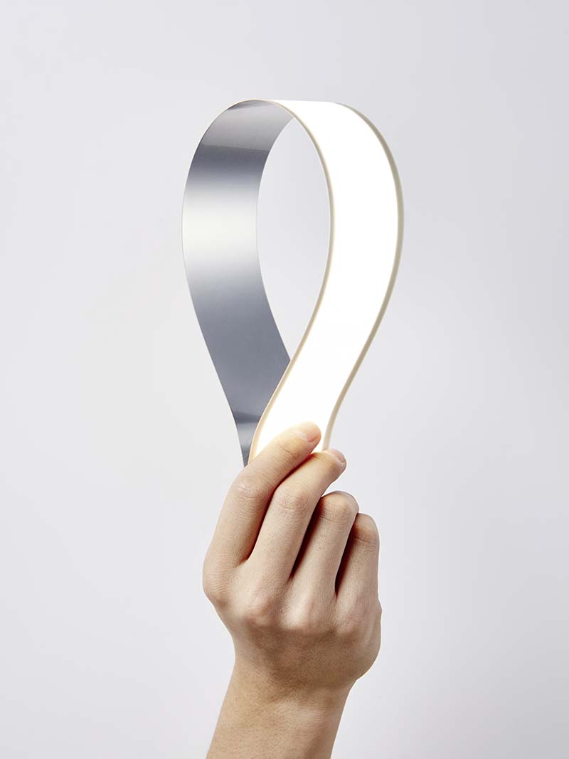 Comme mentionné plus haut, les OLED sont en principe réalisées sur du verre, ce matériau disposant de nombreux avantages, tels qu’une grande transparence et une très bonne herméticité à la vapeur d’eau et à l’oxygène, tout en étant peu onéreux. En utilisant également un matériau transparent pour la cathode, il est possible de réaliser des panneaux transparents (par exemple des fenêtres) se transformant la nuit en luminaires (figure 4). L’utilisation d’une cathode réfléchissante permet, quant à elle, de réaliser un miroir se métamorphosant en source de lumière (figure 5). Finalement, il est aussi possible de les fabriquer sur des substrats flexibles (figure 6), par exemple sur des feuilles de PET, ce qui réduit encore leur poids, leur épaisseur (inférieure à 0,5 mm) et ouvre la voie à de nouvelles applications.