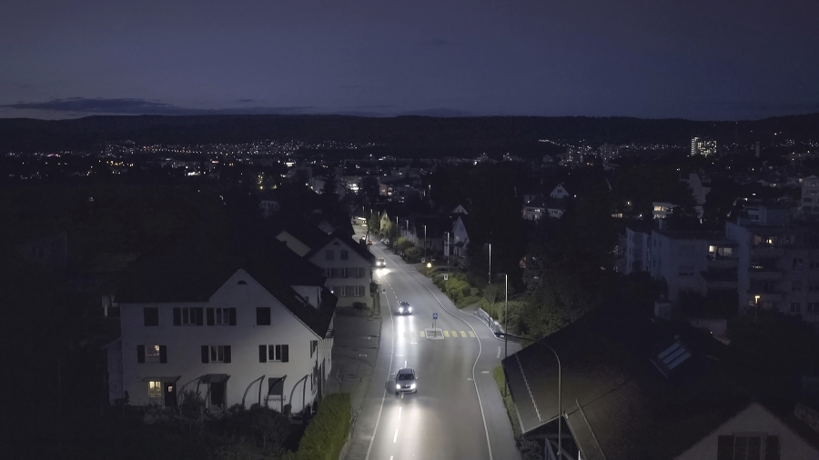 Le système innovant de commande de l'éclairage développé par EKZ et Schréder réinvente la «lumière intelligente». Grâce à un système de capteurs intelligent, les lampadaires s'adaptent facilement et en douceur au volume du trafic, dans l'intérêt des riverains, de la faune nocturne et de l'efficacité énergétique. La diminution de la consommation d'énergie pour l'éclairage routier peut ainsi aller jusqu'à 70%.