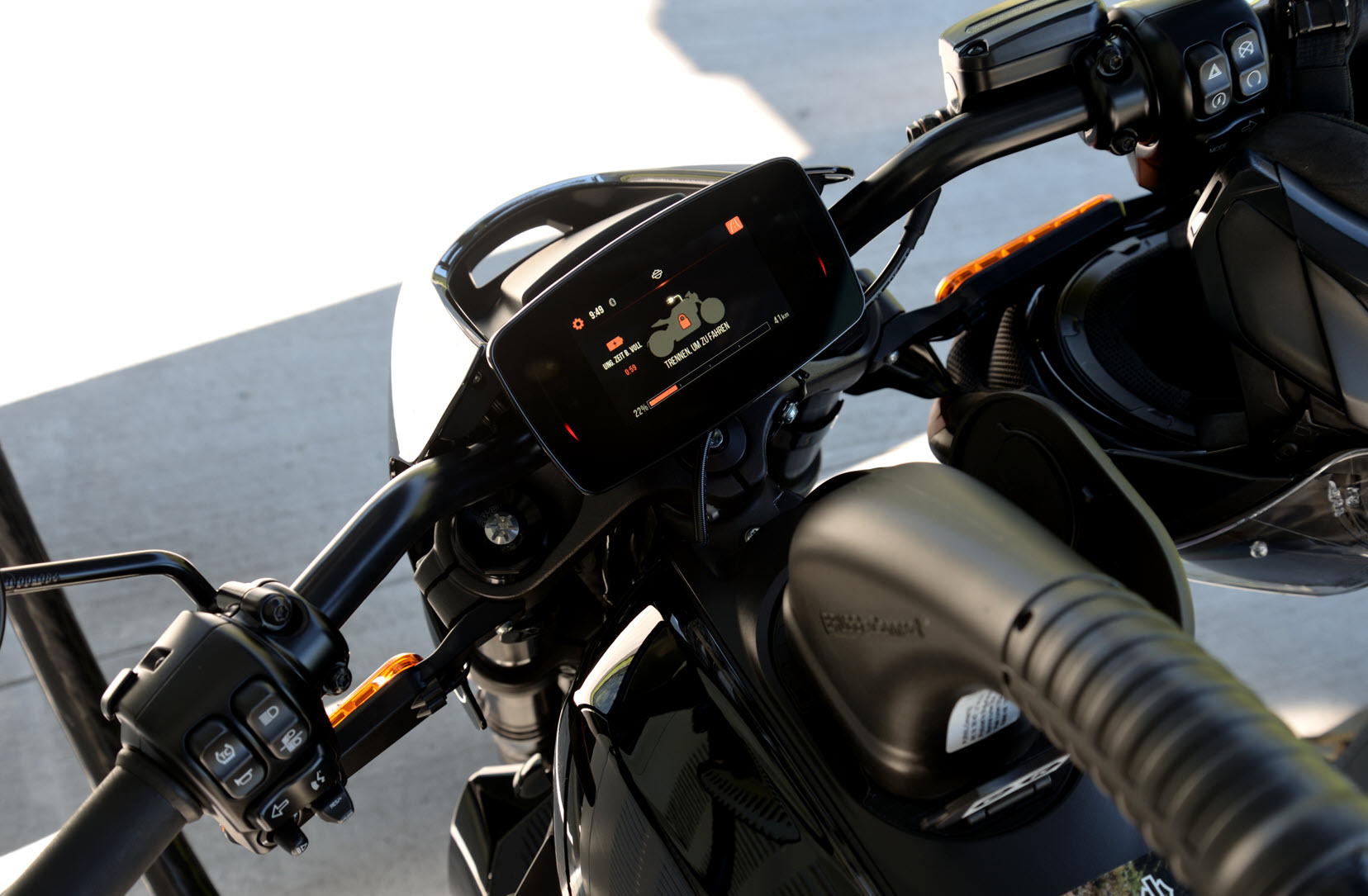 Il n’existe pas beaucoup de points communs entre les Harley à moteur thermique et la Livewire. Pour certains non-conducteurs de Harley, le point le plus évident, qui nécessite aussi un certain temps d’adaptation, est la commande des clignotants. Au lieu d’un interrupteur combiné sur la poignée gauche, les Harley – comme certaines BMW – ont deux boutons, l’un sur la poignée gauche et l’autre sur la poignée droite. Pour les conducteurs qui n’y sont pas habitués, le bouton de droite peut présenter l’inconvénient que lorsqu’on appuie dessus, on tourne parfois légèrement la poignée des gaz – ou devrait-on parler de poignée d’alimentation électrique? L’accélération résultant de ce mouvement involontaire est plutôt gênante, surtout avant de tourner à droite. Toutefois, sur la Livewire, l’arrêt automatique des clignotants après le virage est bien pratique.