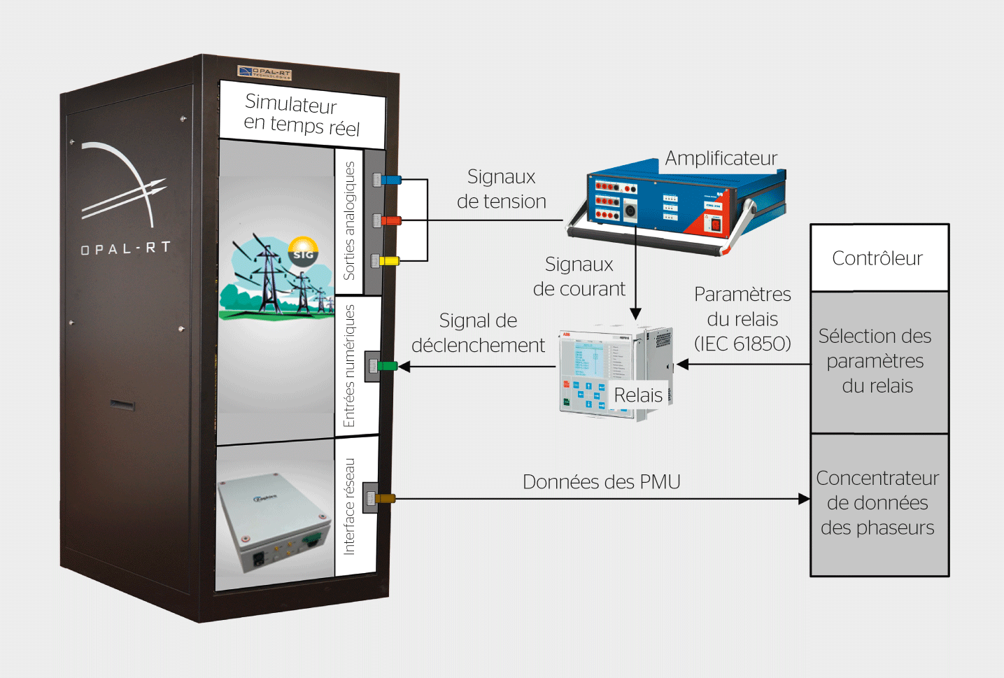 La faisabilité de la solution proposée a été validée en laboratoire grâce à une approche reposant sur des simulations HIL (Hardware In the Loop), dans lesquelles le réseau simulé en temps réel interagit avec une vraie PMU et un vrai relais de protection (figure 4). La PMU fournit au contrôleur, en temps réel, les données relatives à la puissance injectée par la production décentralisée qui, elle, est lue à partir du simulateur faisant office de vrai réseau. Ensuite, le contrôleur utilise ces informations pour ajuster les paramètres du relais sur la base d’une table de groupes de réglage (setting groups) préchargés. En fonction de la puissance photovoltaïque injectée localement, le bon setting group est sélectionné via un message Goose envoyé au relais par le contrôleur.
