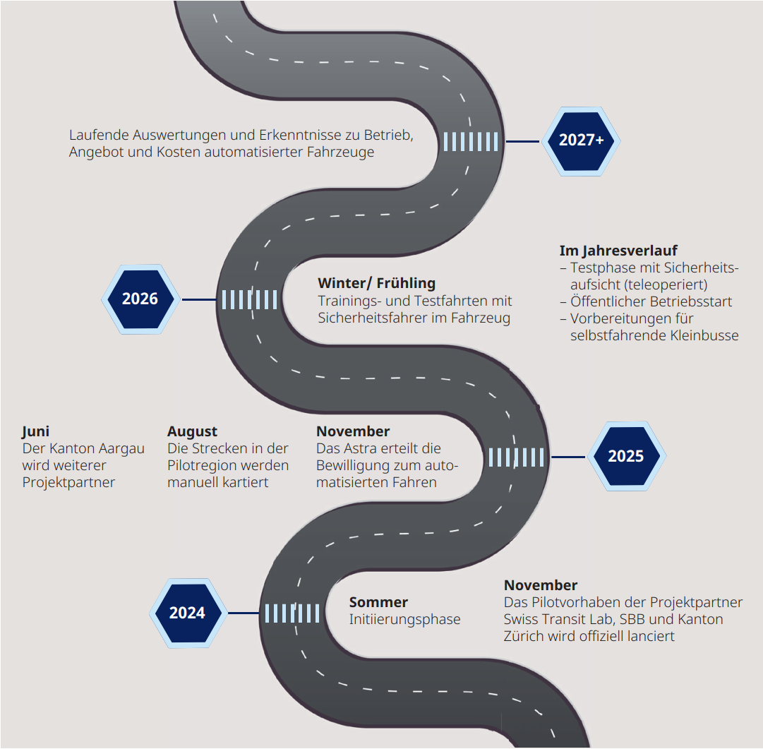 Ein entscheidender Wendepunkt: An einem Novembermorgen um 7.09 Uhr lag die Ausnahmebewilligung des Astra zum automatisierten Fahren im Posteingang. Bereits zwei Stunden später rollen die Fahrzeuge erstmals selbstfahrend durch das Furttal, begleitet von einem Sicherheitsfahrer.