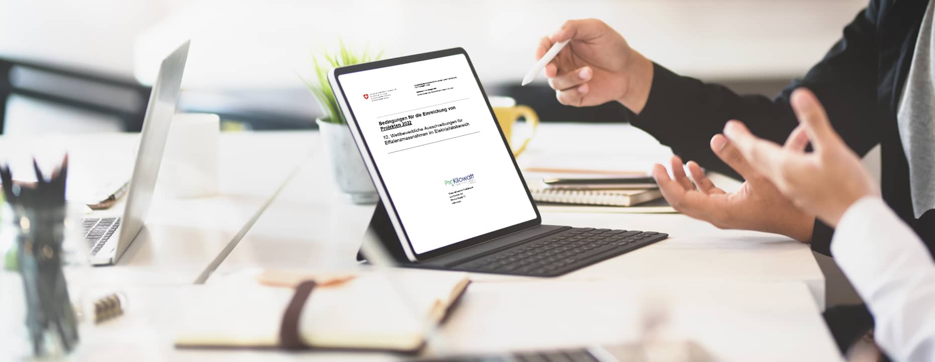Mit dem Instrument der Wettbewerblichen Ausschreibungen unterstützt der Bund Projekte und Programme zur Förderung der Effizienz im Strombereich, die möglichst kostengünstig zum sparsameren Stromverbrauch im Industrie- und Dienstleistungsbereich und in den Haushalten beitragen. So kann durch die im Jahr 2021 neu geförderten Projekte und Programme zukünftig der Stromverbrauch von 16'000 Haushalten eingespart werden. Die Fördermittel werden über einen Zuschlag auf die Übertragungskosten der Hochspannungsnetze finanziert. Für die Abwicklung ist die Firma CimArk SA in Sion im Auftrag des Bundesamts für Energie zuständig.