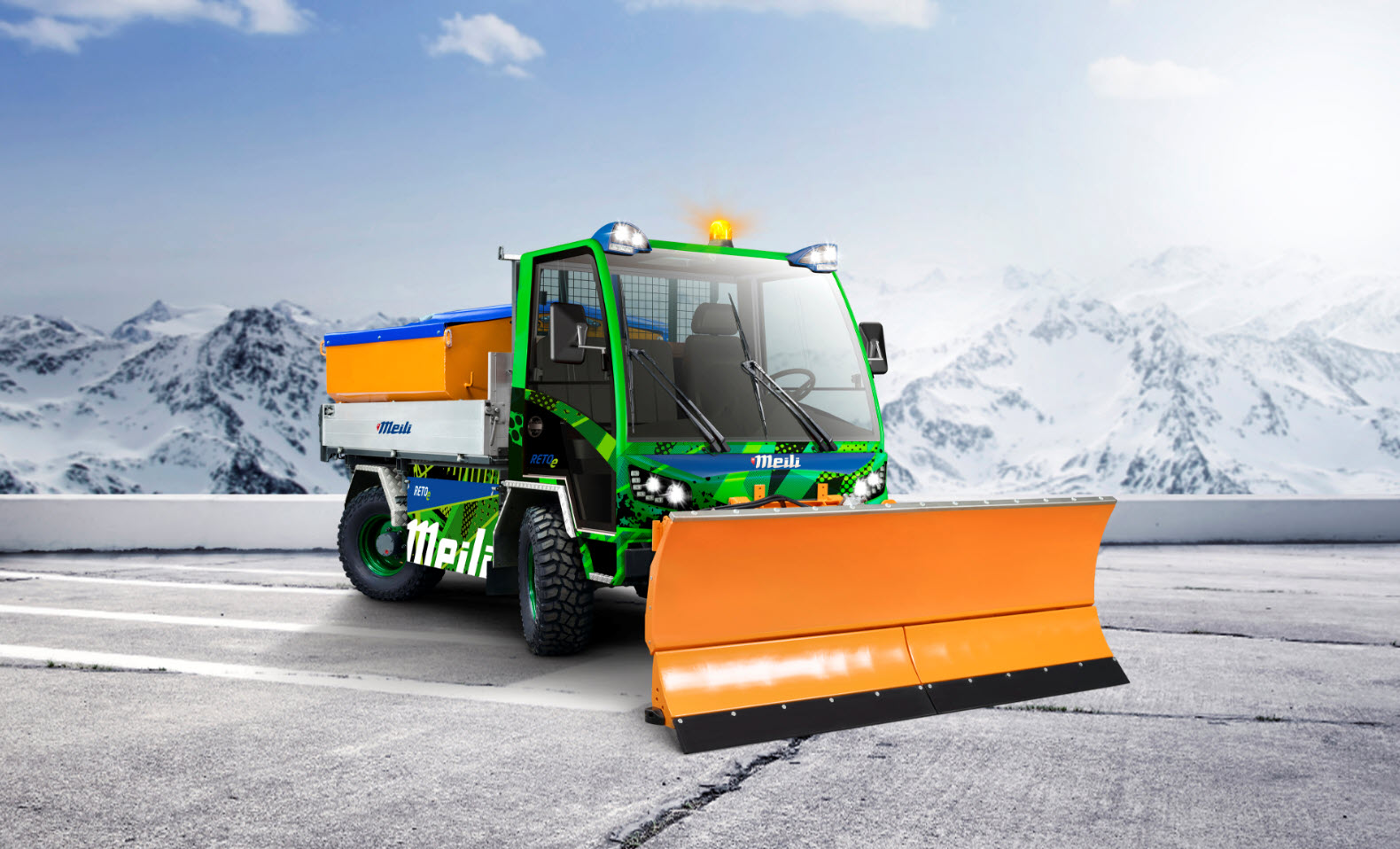 Die Elektromobilität ist nun auch in der Nutzfahrzeugbranche angekommen. Zwei der bewährten Kommunalfahrzeuge von Meili gibt es nun elektrisch. Die Fahrzeuge sind Kraftpakete mit einer Nutzlast von 3 t und einem Elektromotor mit einer Spitzenleistung bis zu 120 kW. Sie verfügen zudem über ein intelligentes Rückgewinnungs-Energiemanagement. Ihre Lithium-Ionen-Hochleistungsbatterie verfügt über eine Ladekapazität bis 100 kWh. Die nominale Ladezeit beträgt 4 h, die Schnellladung dauert 1 h. Ein Lichtkonzept mit integrierter LED-Technologie und optionalen Arbeitsscheinwerfern gehört auch zu den energieeffizienten und geräuscharmen Fahrzeugen.