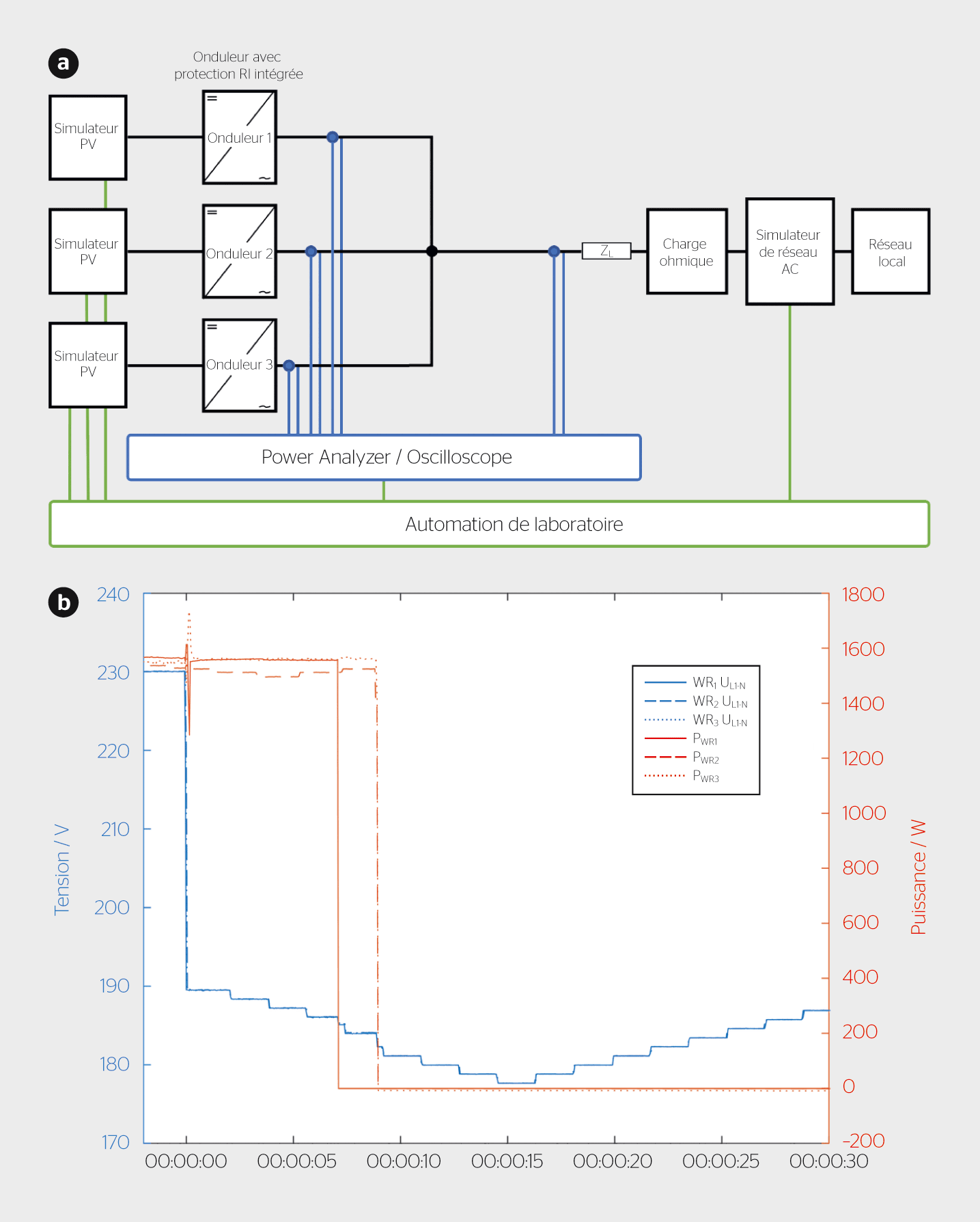 Lorsqu’un court-circuit, une chute de tension prolongée ou une forte variation de fréquence survient sur le réseau basse tension, la protection RI déconnecte les installations de production d’énergie afin d’éviter d’éventuels dommages et de permettre les réparations. En revanche, si la baisse de tension est légère ou de très courte durée, la protection RI ne doit pas déclencher de coupure inutile afin de ne pas compromettre l’approvisionnement électrique. Pour que la protection RI réagisse toujours de manière adéquate, il est essentiel que les installateurs configurent correctement les onduleurs.